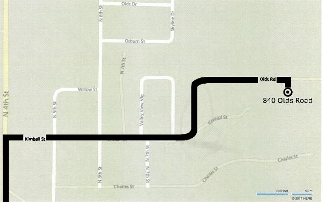 Once on Olds Road, look for a large tan shop on the right. There will be dumpsters around it. Proceed behind the shop, to the office building behind the shop. |